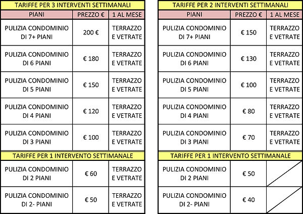 Pulizia condomini a prezzi eccezionali (le tariffe sono da considerarsi iva inclusa)